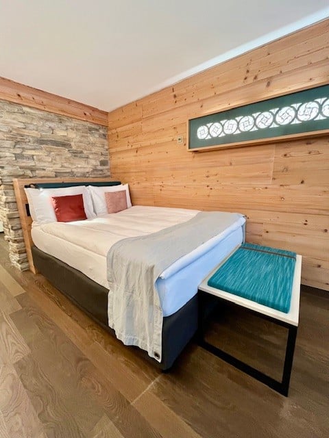 Unsere gemütlichen Tiny Hotelzimmer im 2. und 3. Stock bieten auf 15 m² alles, was Sie für einen angenehmen Aufenthalt benötigen. Ausgestattet mit einem komfortablen Grandlit (140×200 cm) – ohne separate Betten – laden sie zum Entspannen ein. Ein Flachbildfernseher und ein Telefon stehen für Ihre Unterhaltung und Kommunikation bereit. Am Schreibtisch können Sie bequem arbeiten